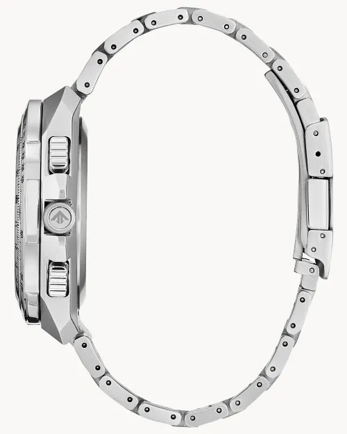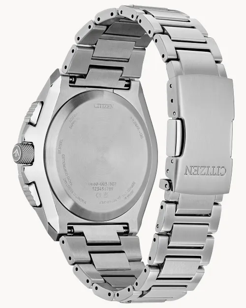 Reach a higher altitude in style with the Promaster Air Skyhawk A-T, the latest addition to the ultramodern Promaster Air collection. The performance-based design is expressed via silver-tone stainless steel case equipped with a matching integrated bracelet. The black dial presents the advanced functions of the watch, including atomic time clock synchronization for superior accuracy, time adjustment available in 43 world cities, a 1/100 second chronograph measuring up to 24 hours, a perpetual calendar, GMT dual time (second time zone), 2 alarms, a 99-minute countdown timer, a digital backlight display, a Universal Coordinated Time (UTC) display, and a power reserve indicator. Maintaining the robust standards of the Promaster Collection, the watch is water resistant up to 200 metres. Powered by Citizen’s proprietary Eco-Drive technology to provide light-powered vitality continuously and sustainably without ever needing a battery. Calibre U680.